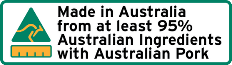 AUSTRALIAN PORK (91%), WATER, ACIDITY REGULATORS (262, 331), SALT, MALTODEXTRIN (MAIZE), EMULSIFIER (500), ANTIOXIDANT (316), CANOLA OIL.